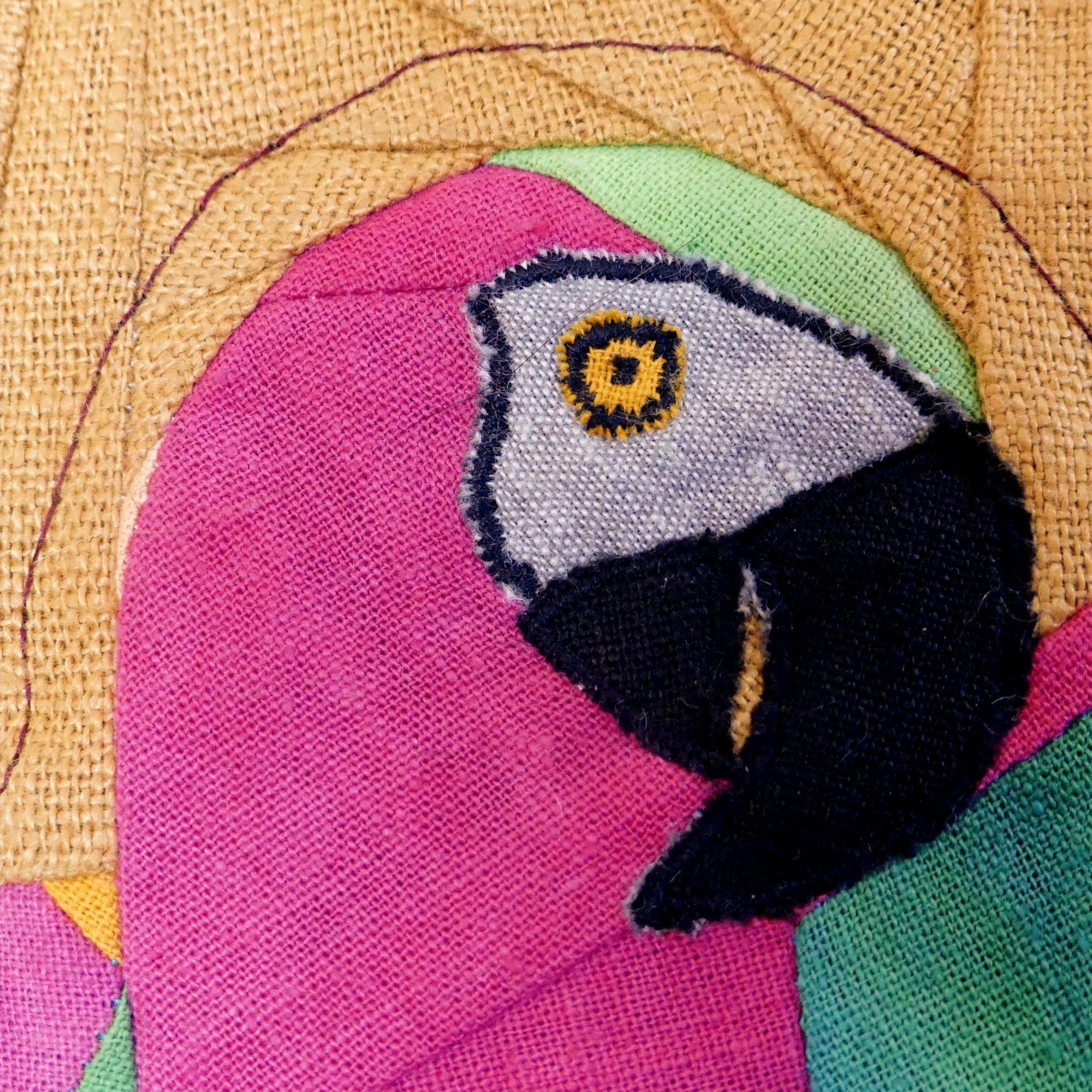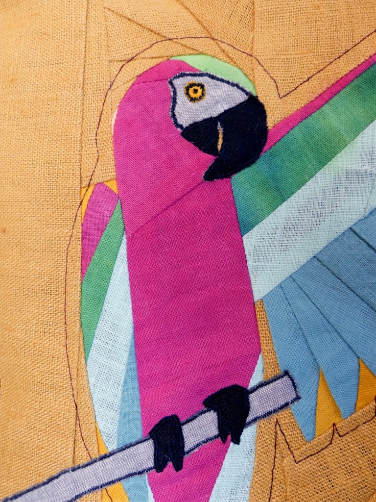 Inspirée par la fabuleuse beauté des tropiques où j’ai résidé de longues années, je propose une représentation d’un des plus beaux perroquets de l’Amazonie, l’Ara Severus.