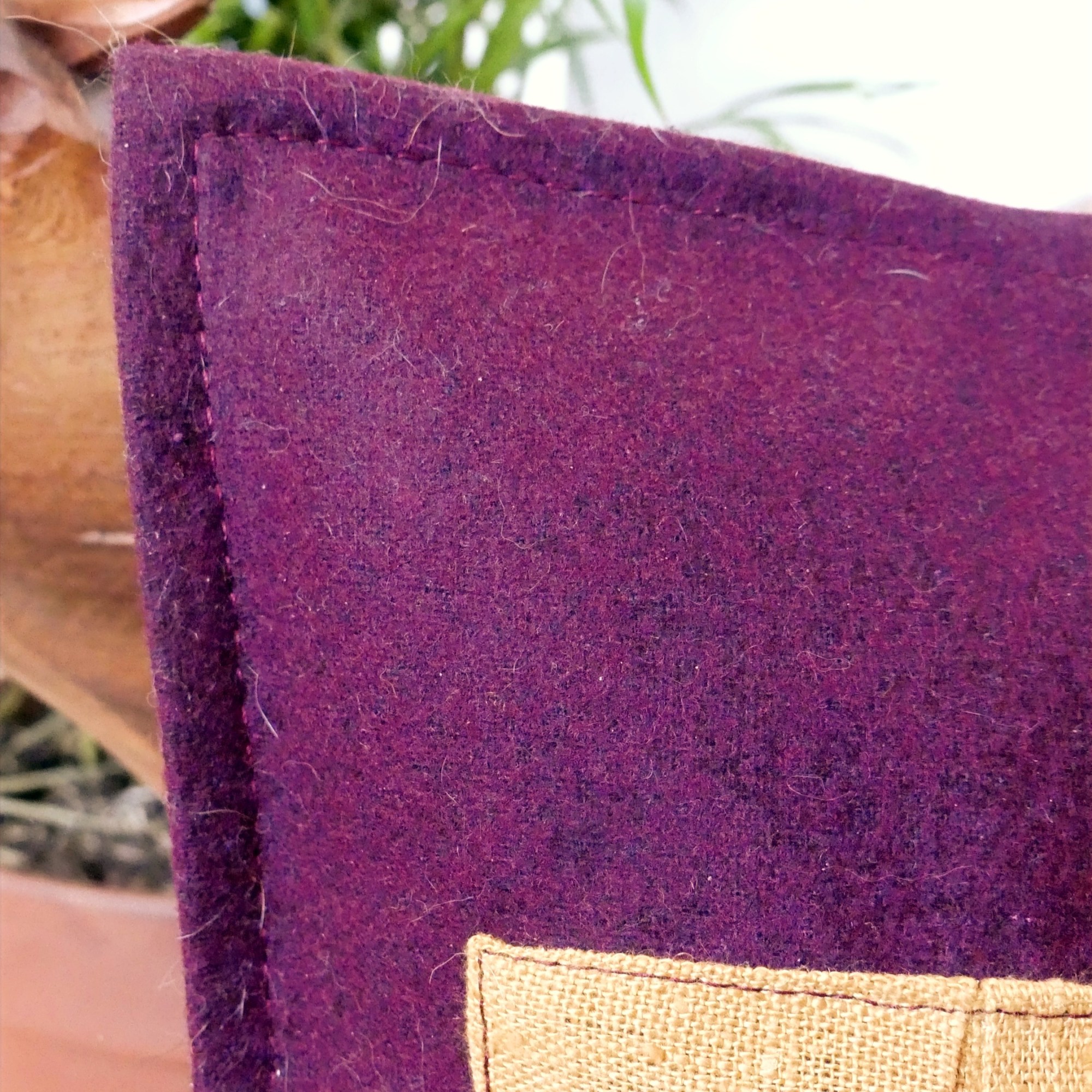- Matières: lin teint à la main* (illustration), laine* (housse pourpre), 100% coton* (fil)