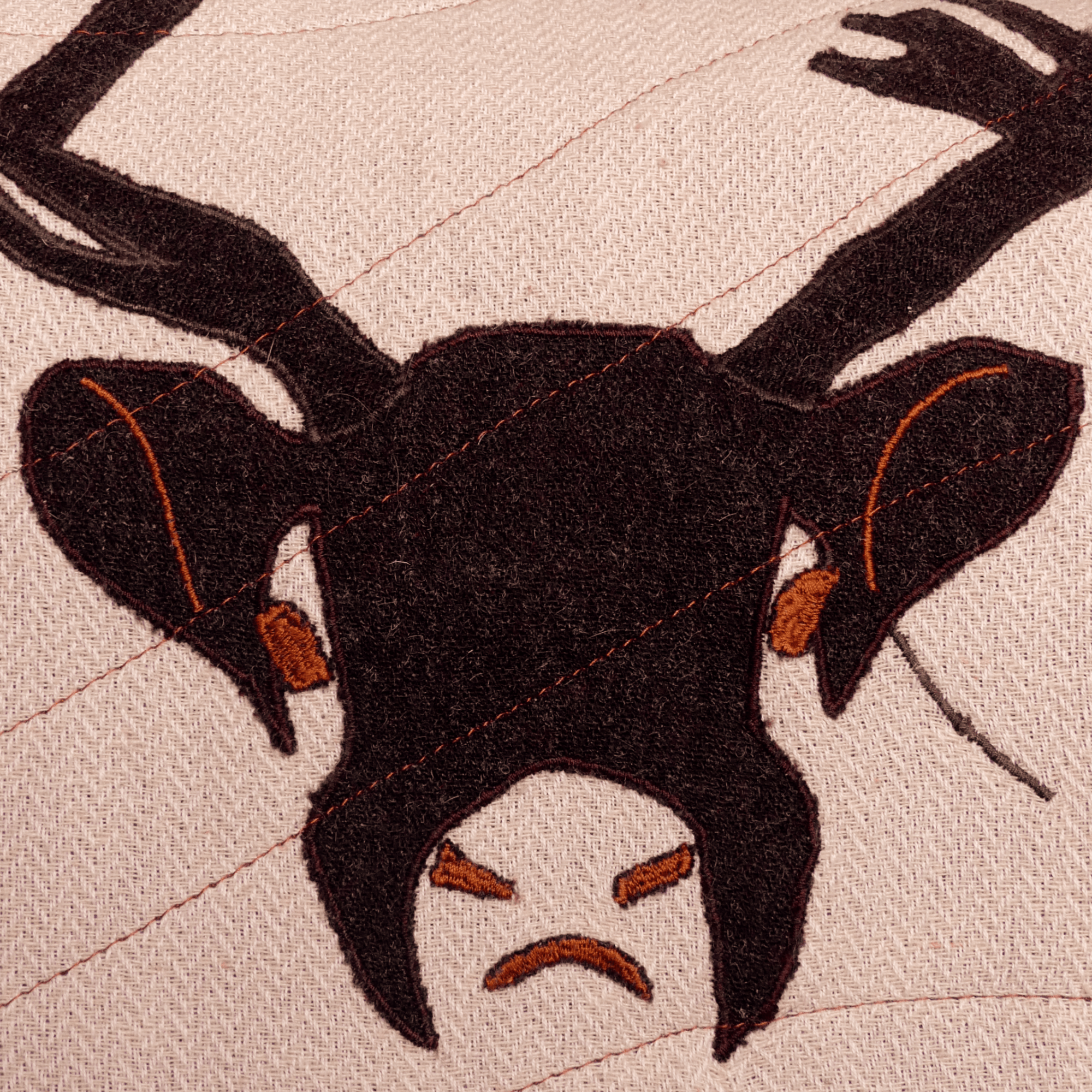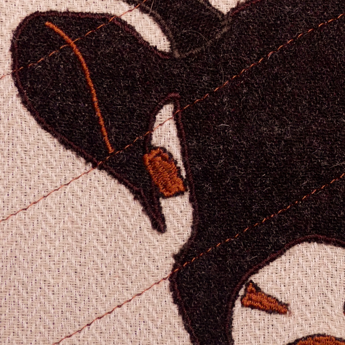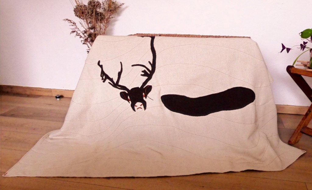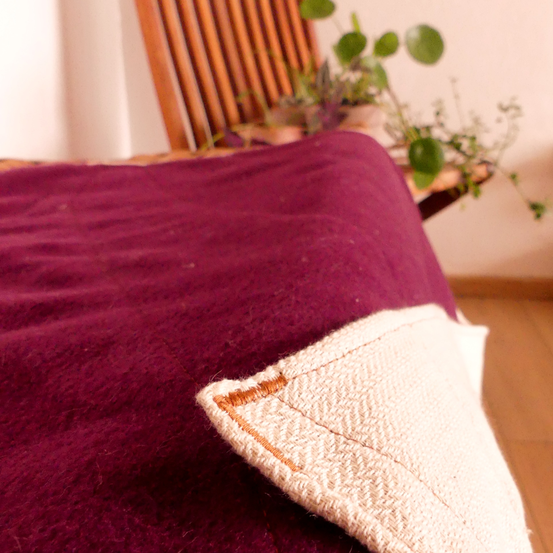 - Matières: chanvre/coton* (drap dessus), laine* (patch et dessous), coton* (fil)