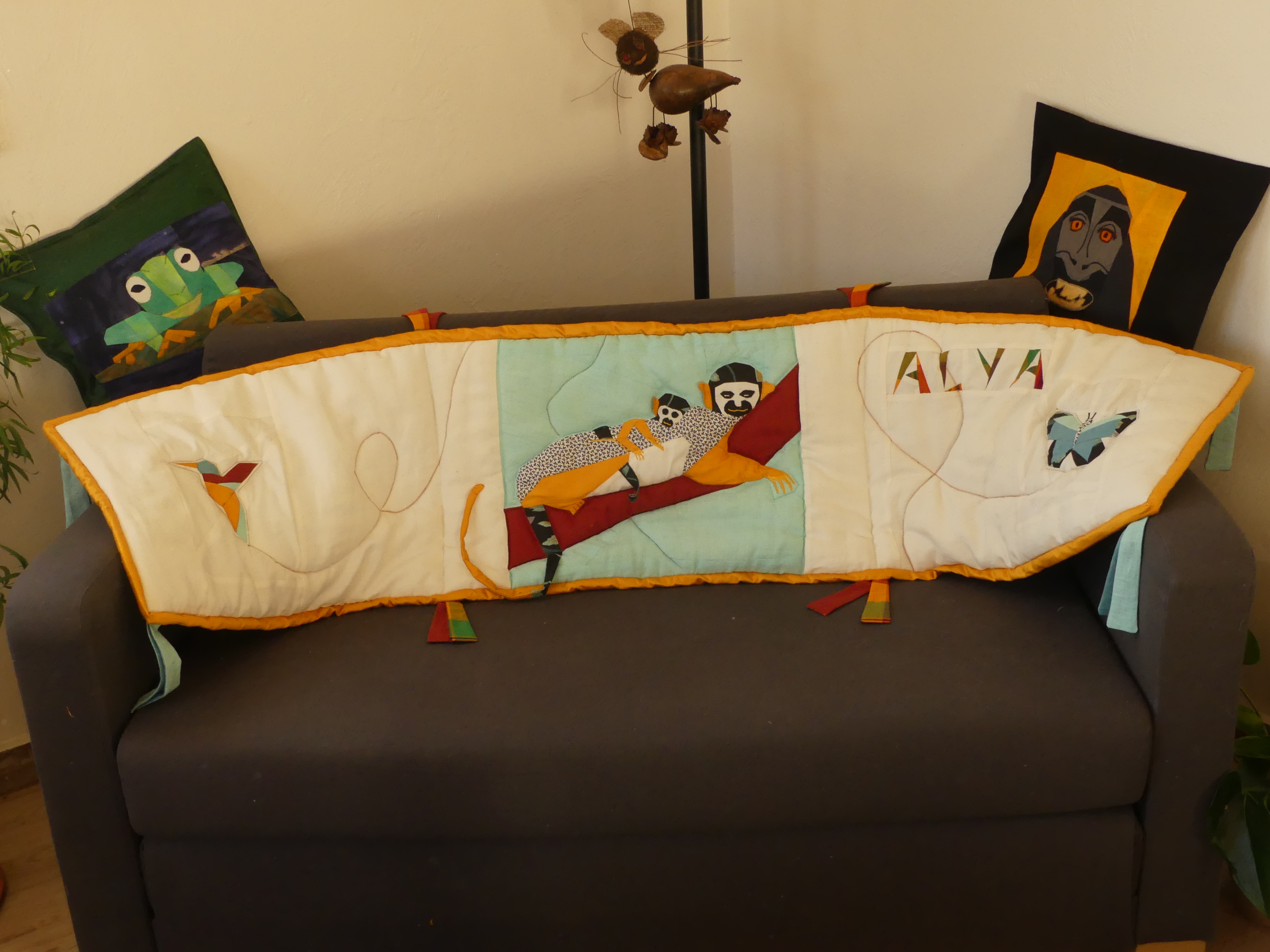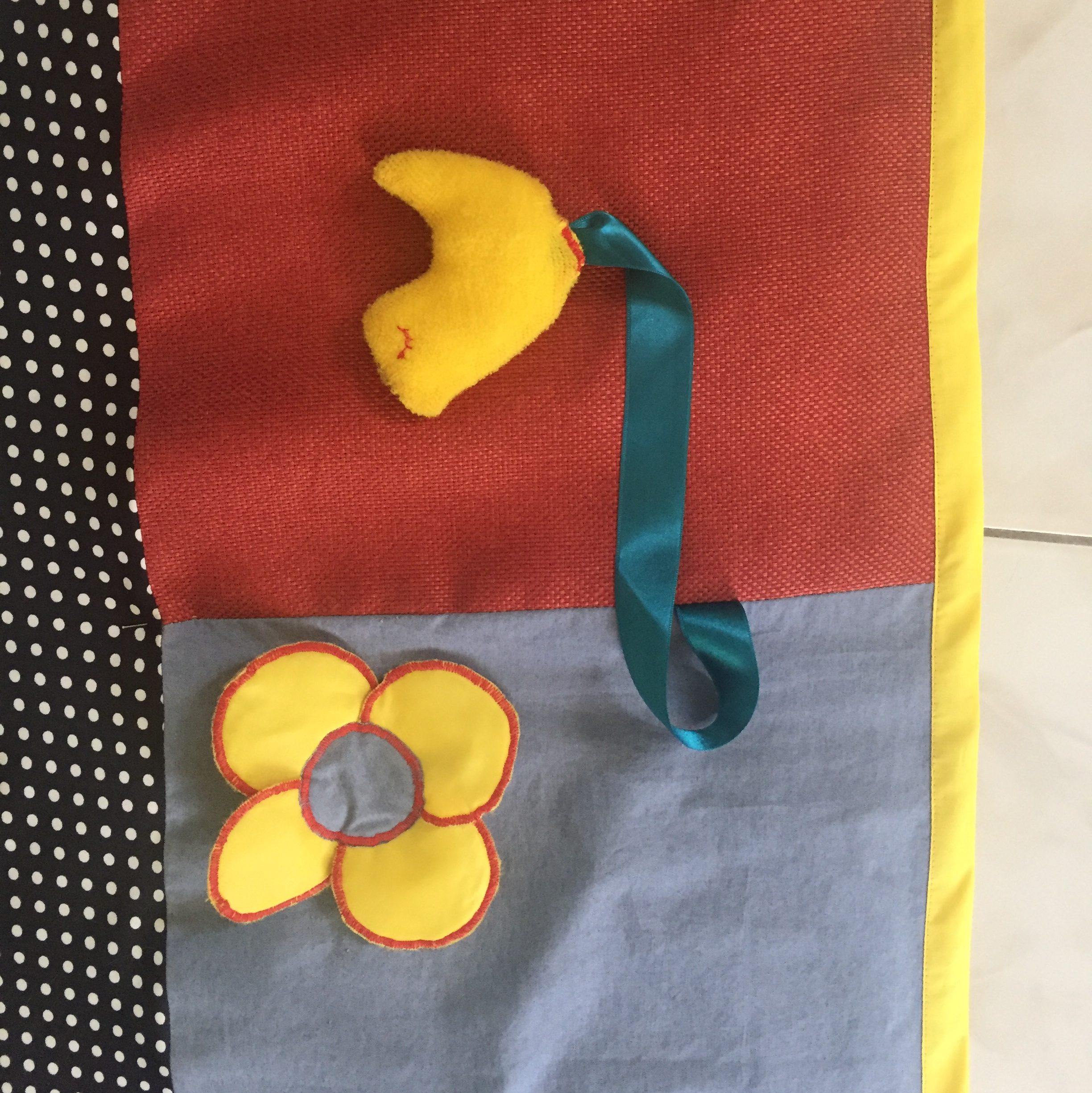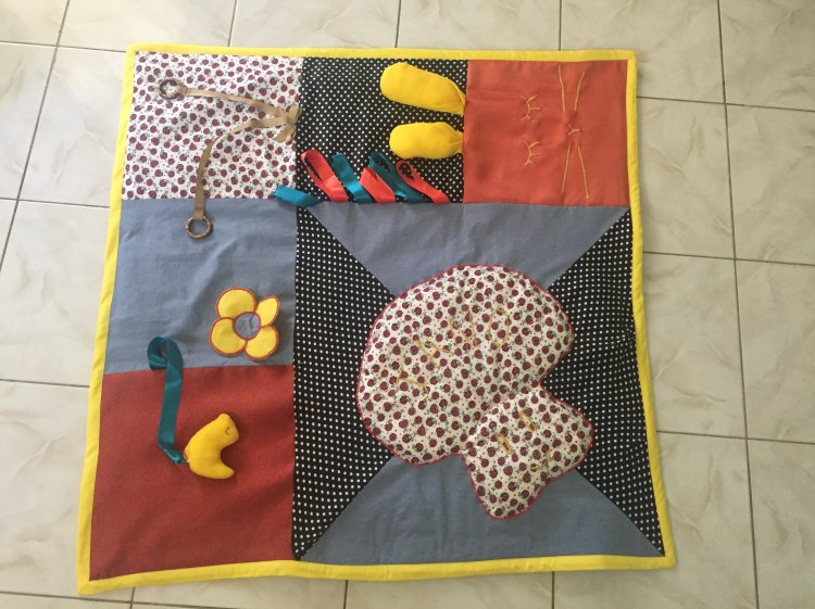 Ici le tapis d’éveil a été fait avec de nombreuses récupérations: