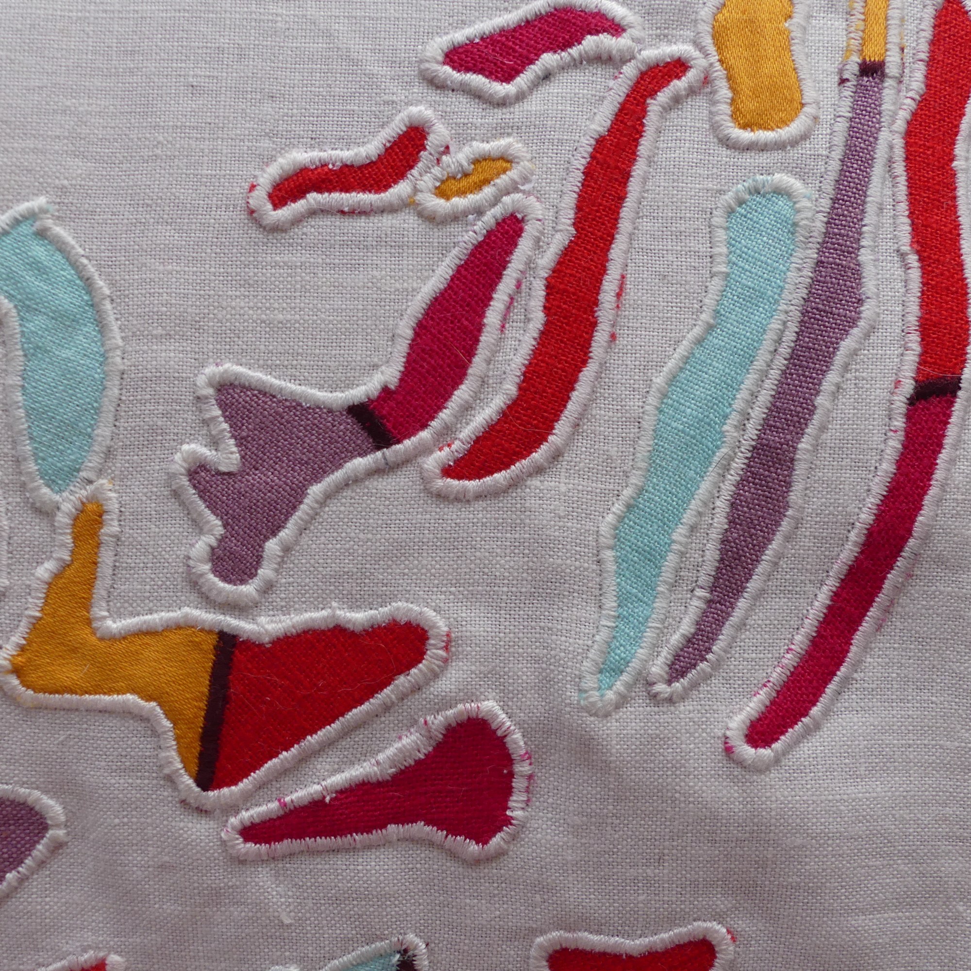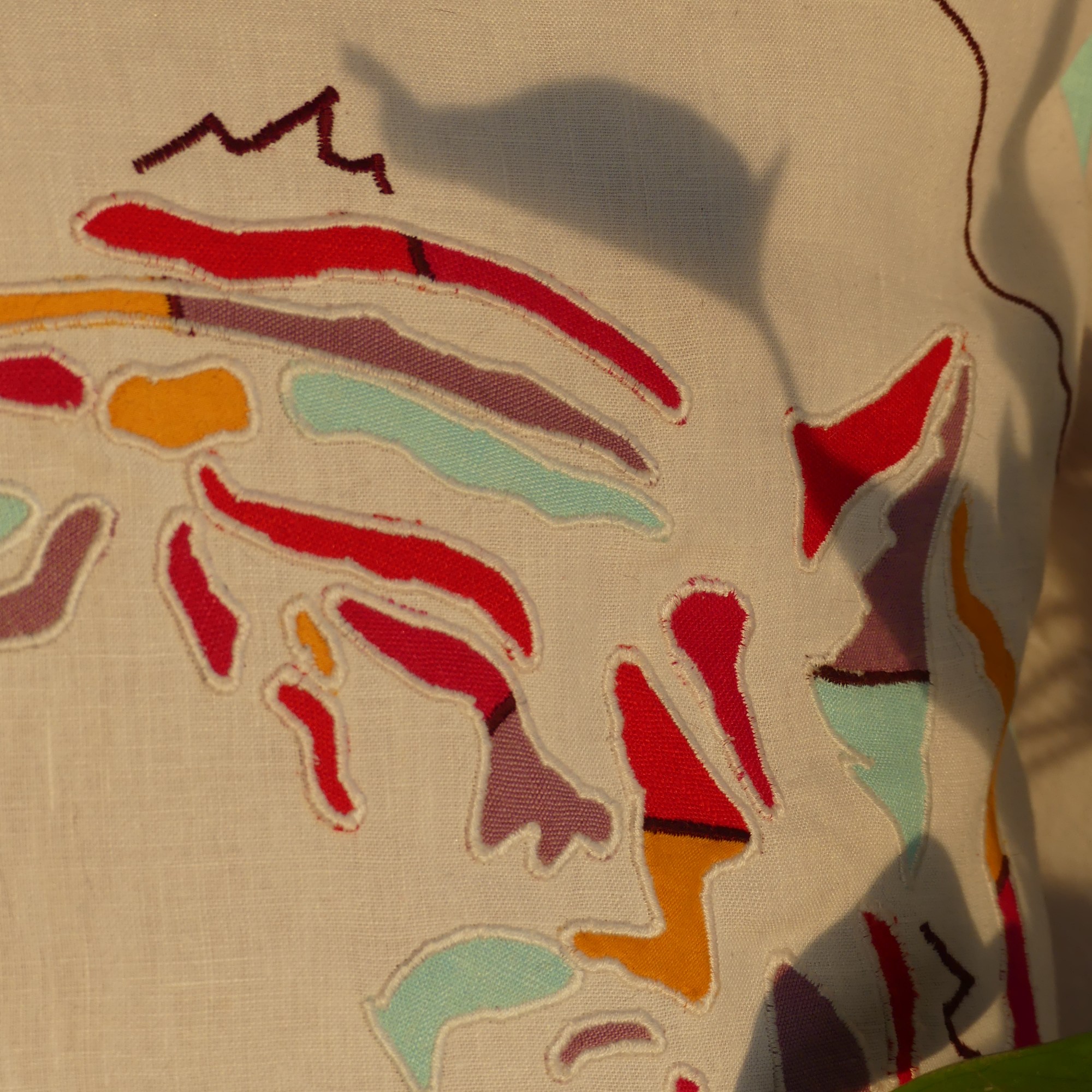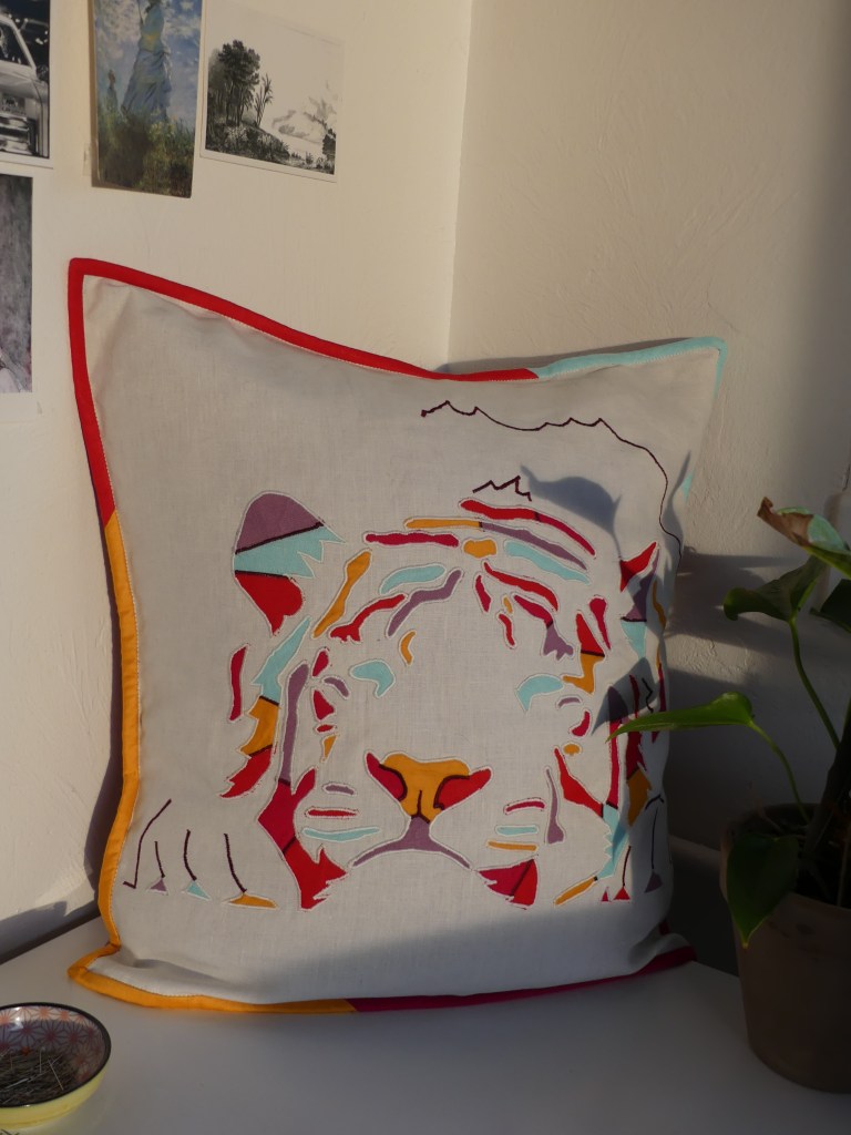 - Toutes les matières composant le patchwork animal sont en pure lin de très belles qualités de couleurs et structures diverses et contrastantes, brodées de fil de coton.