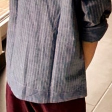 - La chemise présente de jolis détails par un col Mao, un bas de chemise dégradé vers l’arrière et des manches pouvant être remontées et retenues par un bouton.