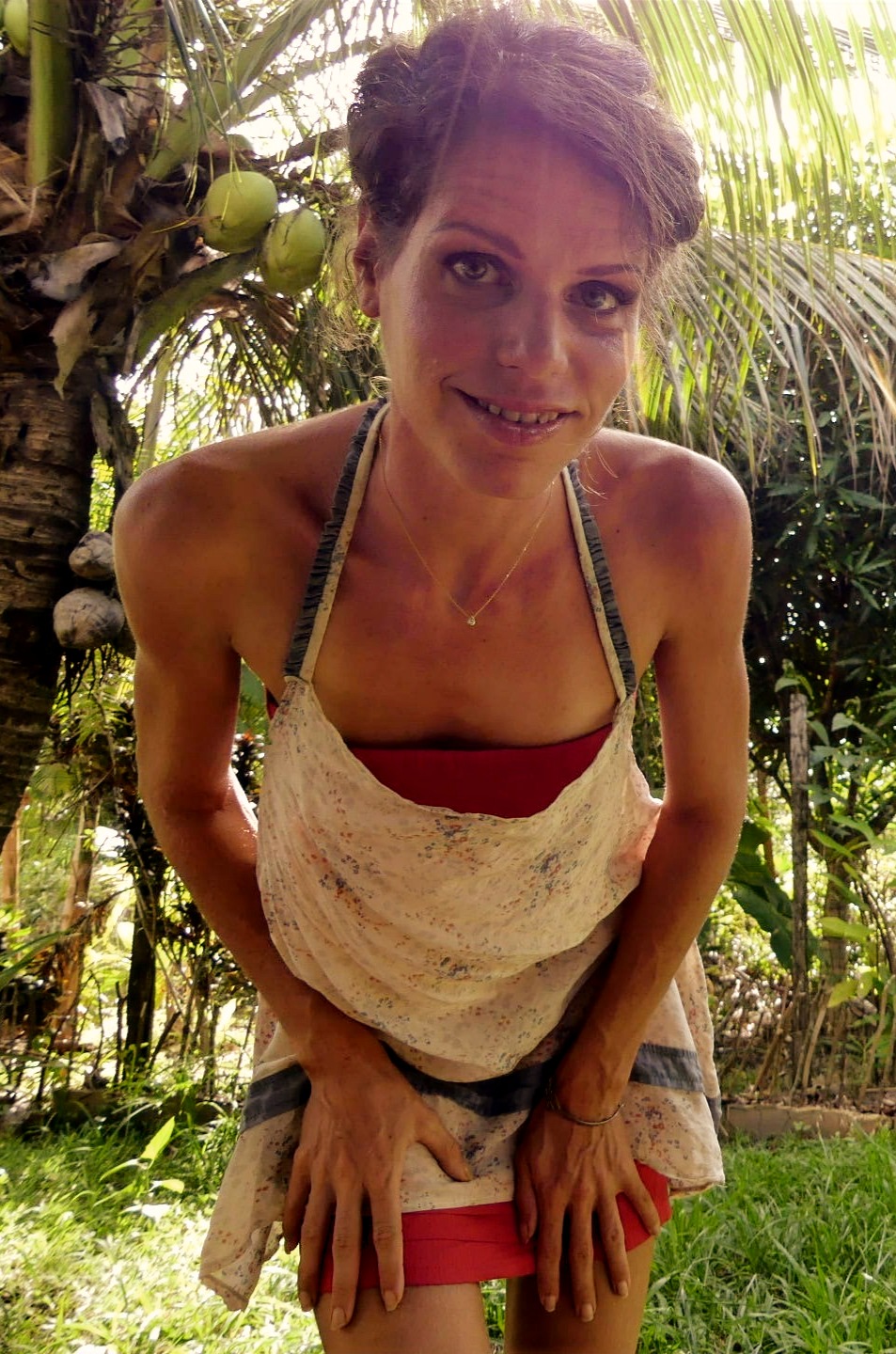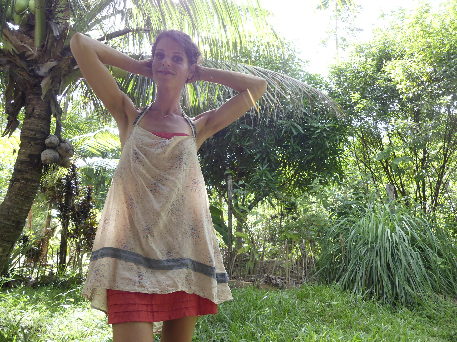 - En contraste, un original tablier en soie fleuri superposé sur la robe apporte légèreté et féminité. Il laisse finement apparaître le dos, la poitrine et l’avant des jambes.