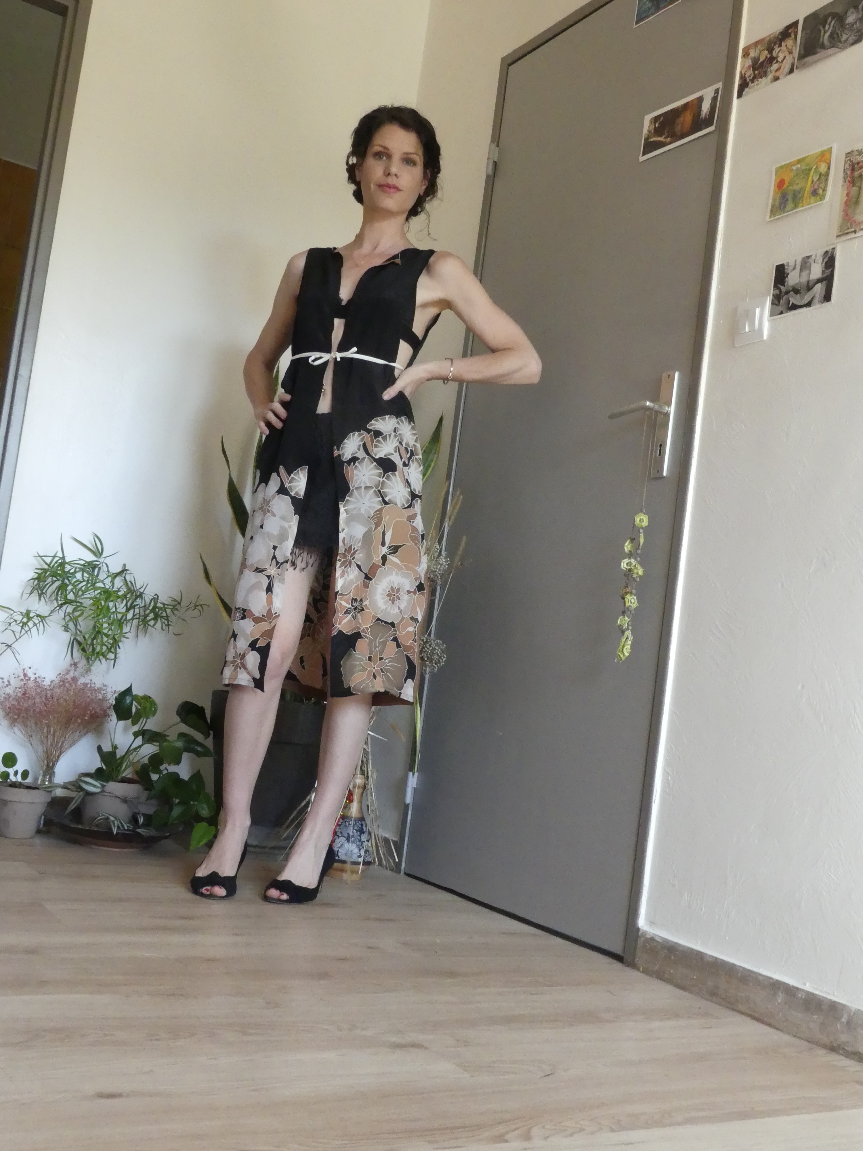 Élégante robe cache maillot en soie vintage, adaptable de jour comme de nuit.