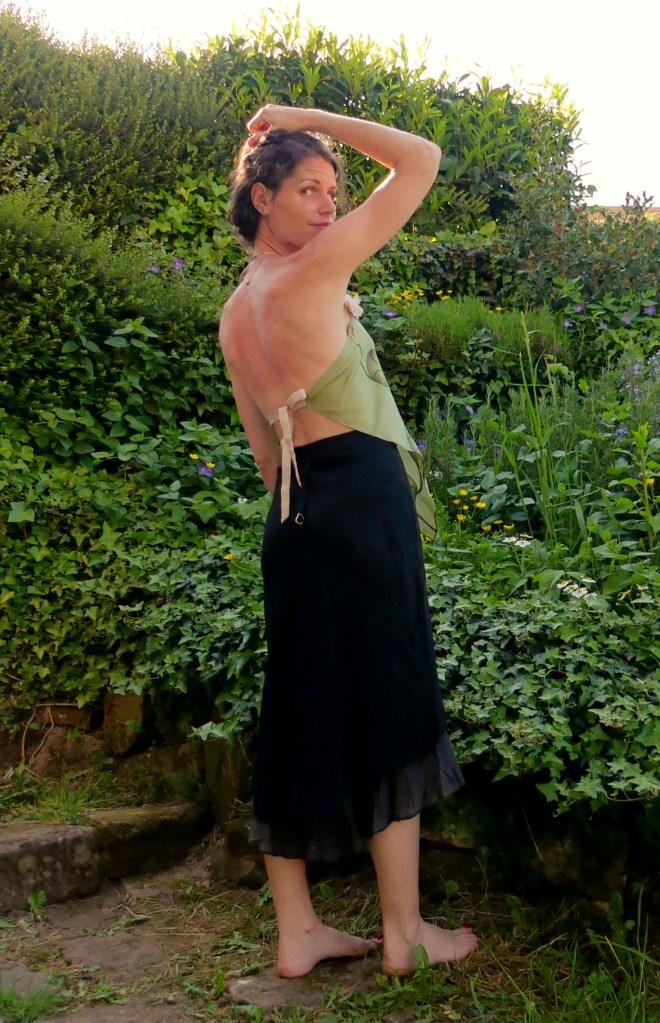 Superbe dos nu en soie vintage, parfaitement décontractée pour les beaux jours.