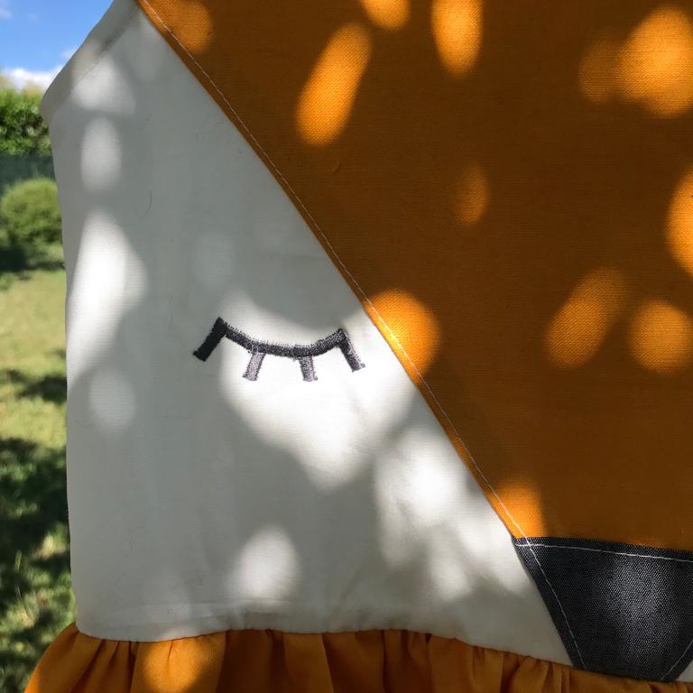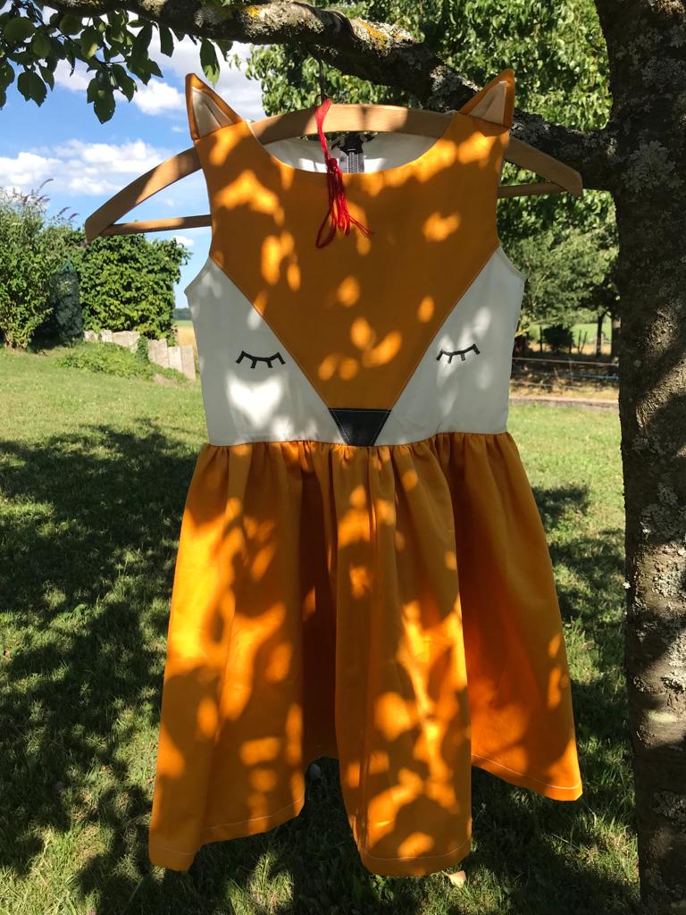 - Son esthétisme étonnant se remarque par une broderie d’un renard apaisé à l’avant du buste, et par sublimes oreilles en 3D décoratives sur les épaules. Le robe qui s’arrête aux genoux est assurée à l’arrière avec une fermeture invisible.